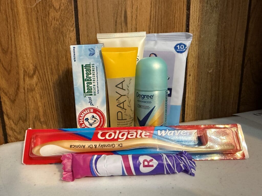 Our hygiene kits include basic essentials such as toothbrushes, toothpaste, and body wash for those in need. Hygiene kit content will vary.